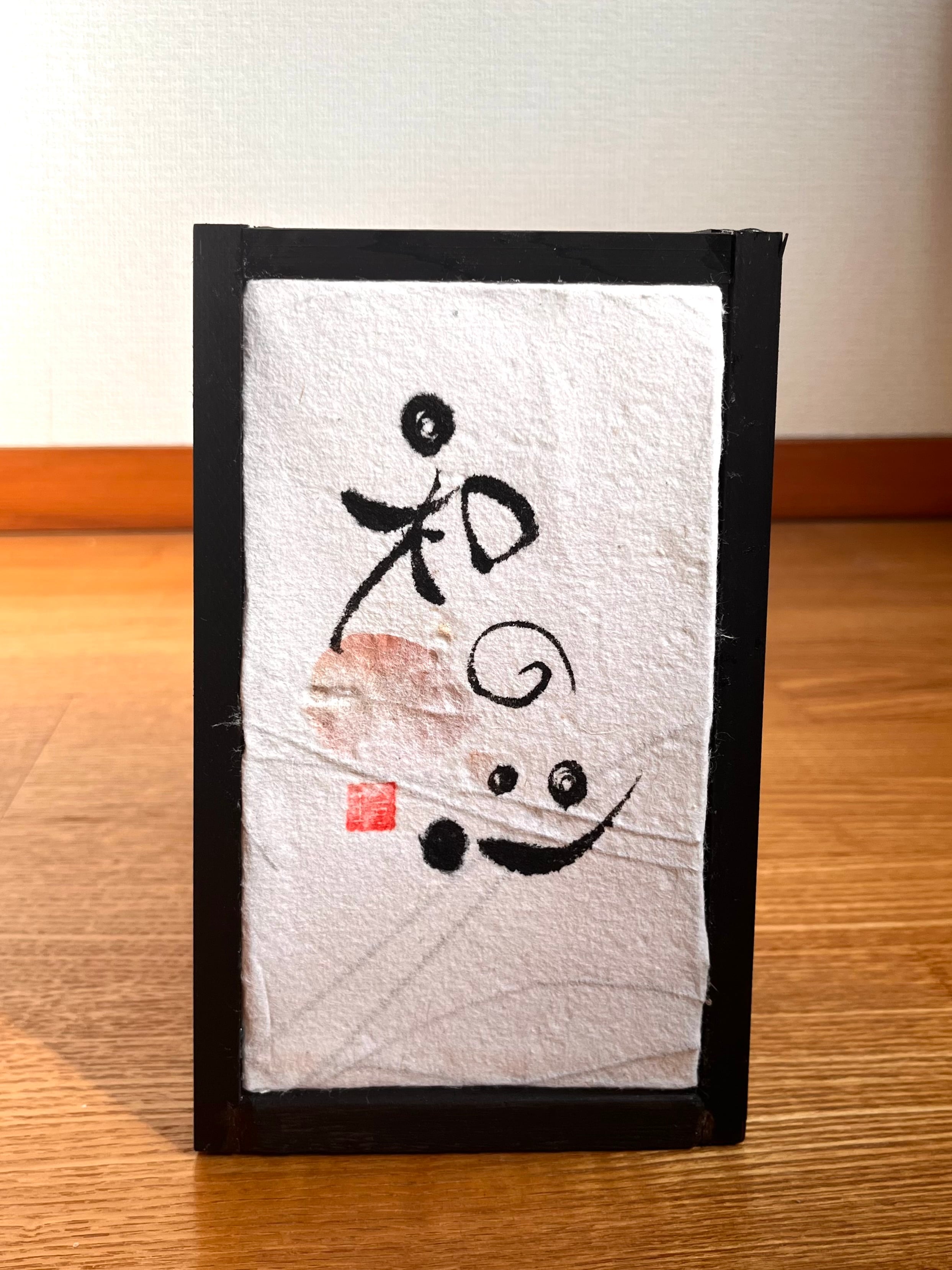 書道家ですが、木材カットからペイント、組み立てまで1人で作っている手作り作品です。