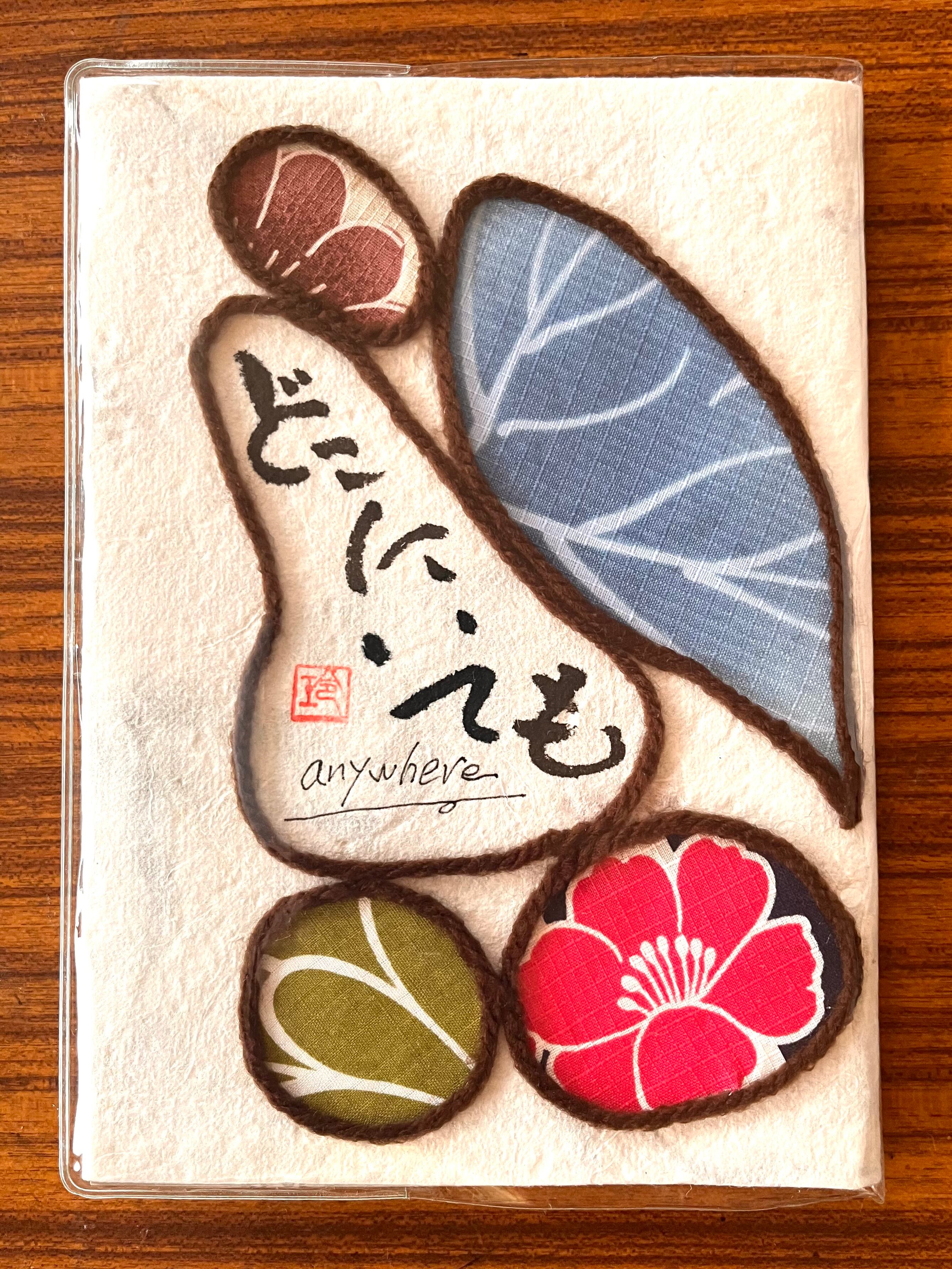 プレゼントやお土産用に作ったメッセージ付きのノートカバーです。