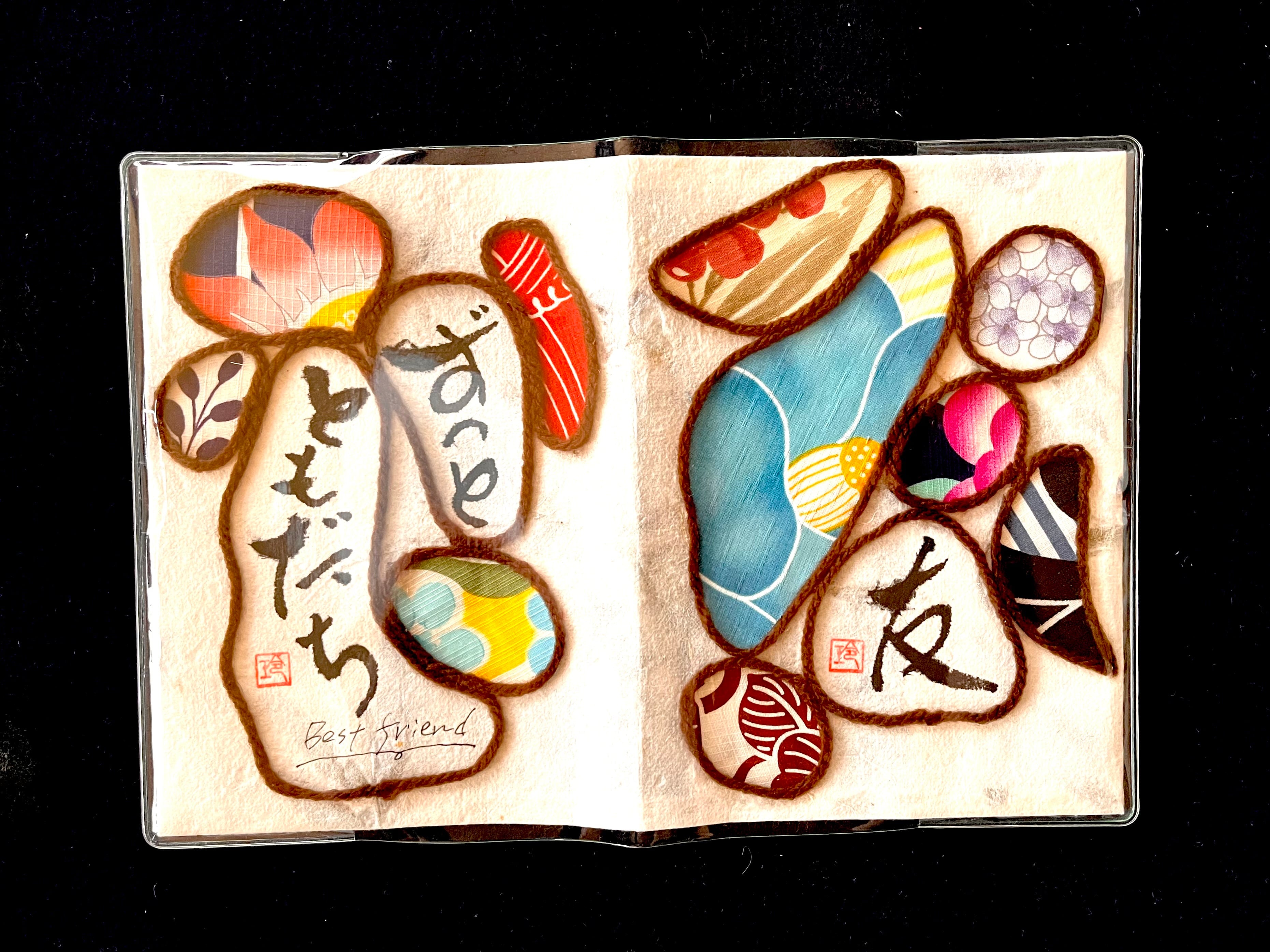 プレゼントやお土産用に作ったメッセージ付きのノートカバーです。