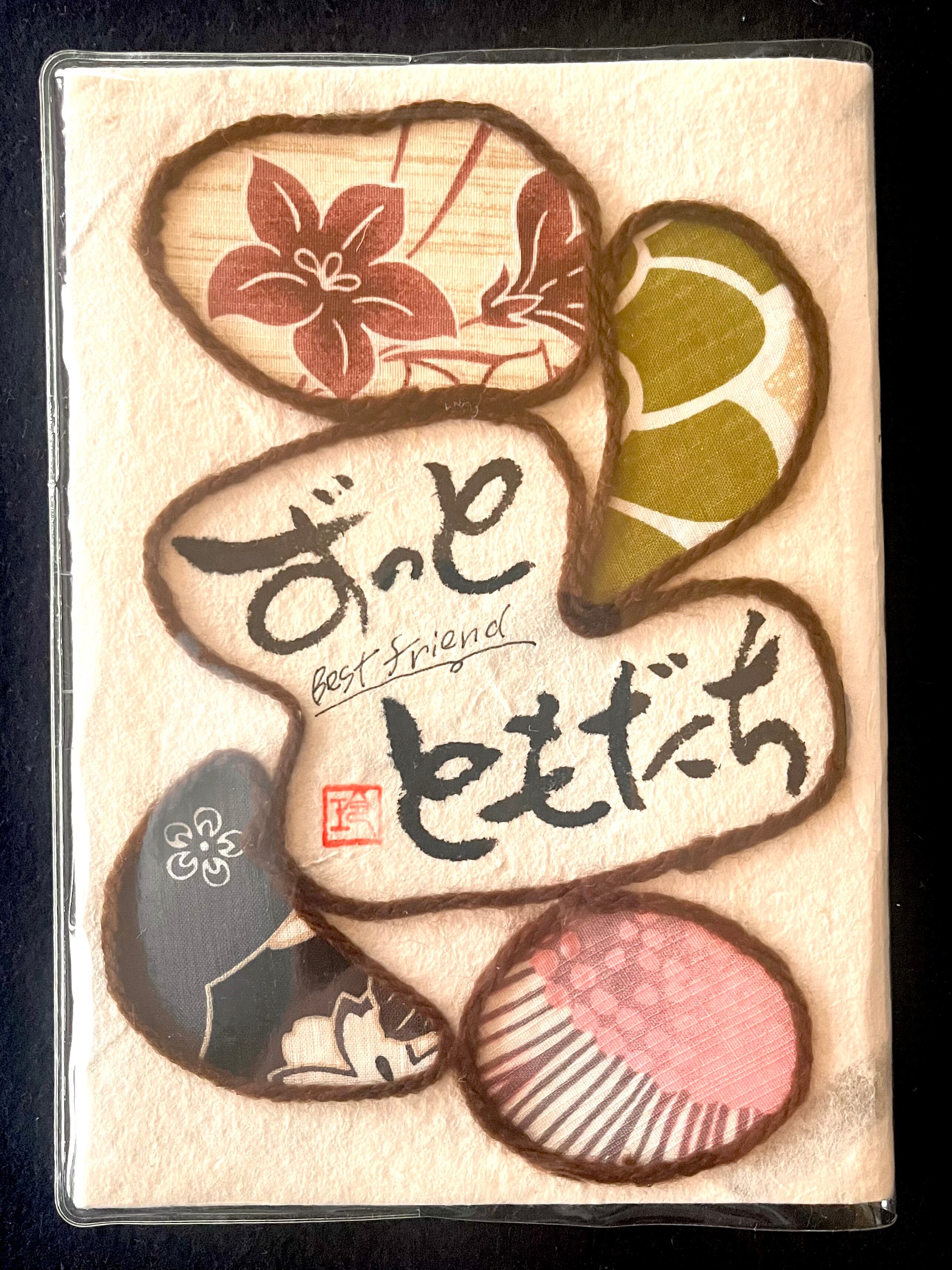 プレゼントやお土産用に作ったメッセージ付きのノートカバーです。