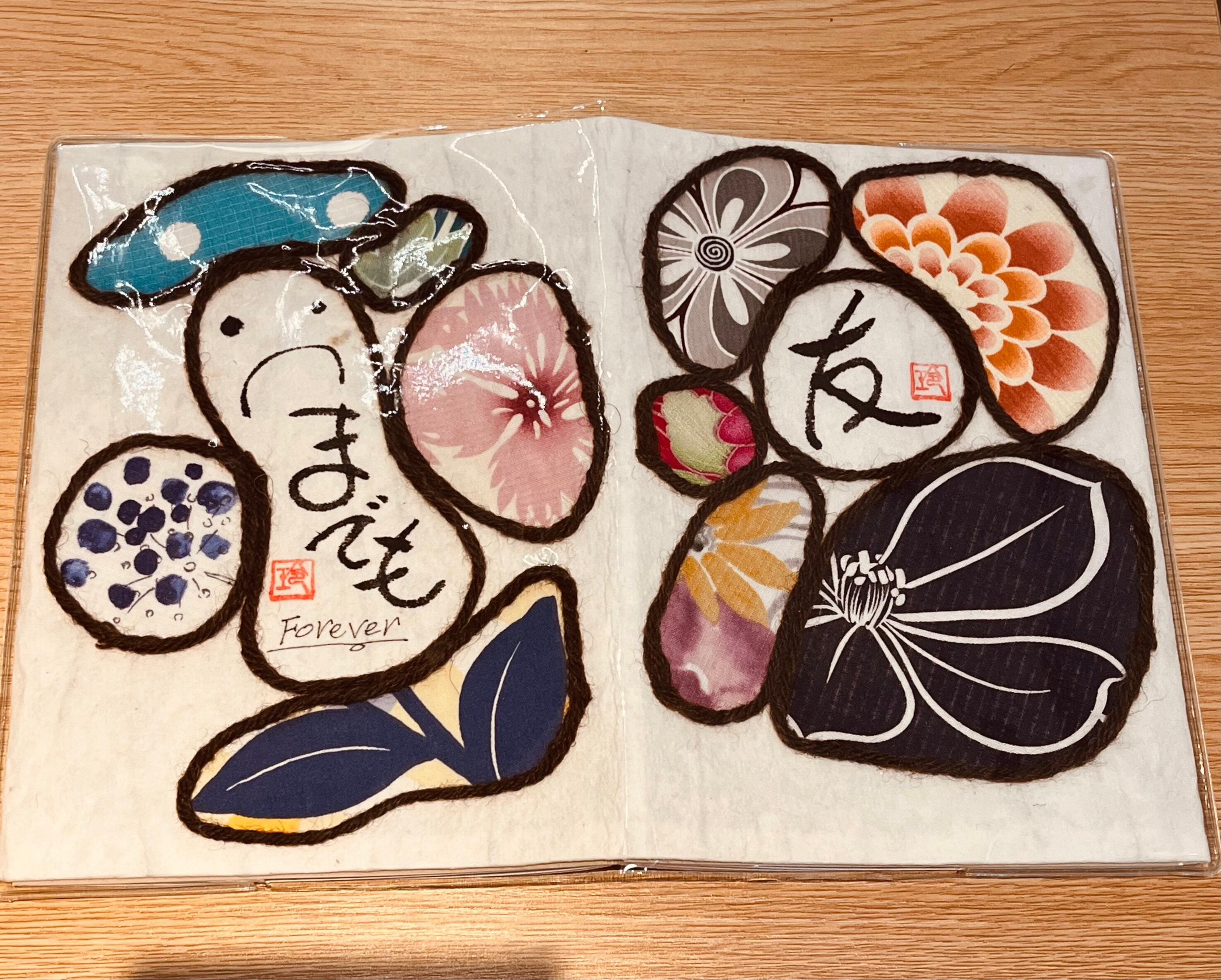 プレゼントやお土産用に作ったメッセージ付きのノートカバーです。