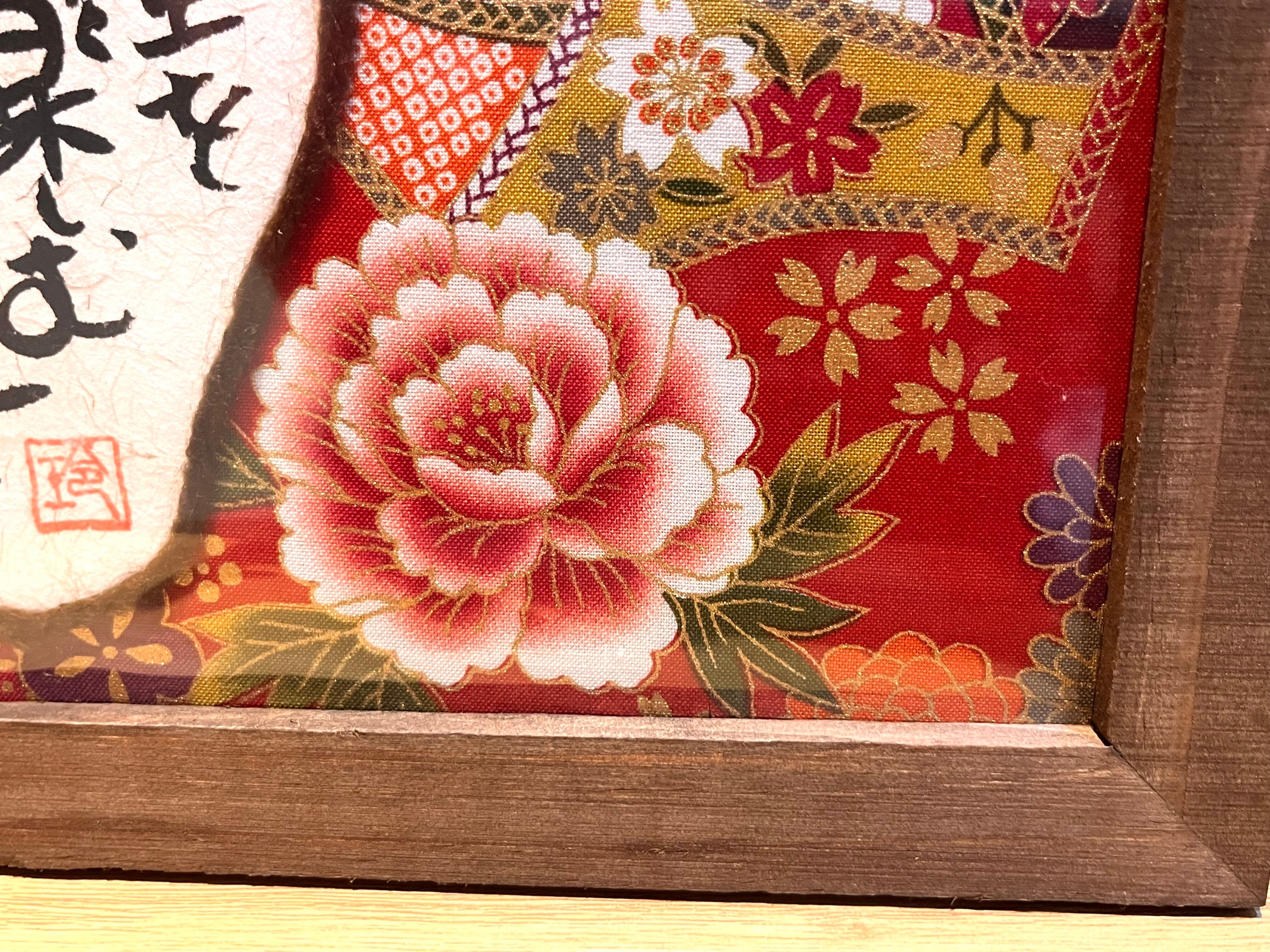 前向きな言葉を着物柄を使用して明るく華やかに作りました。