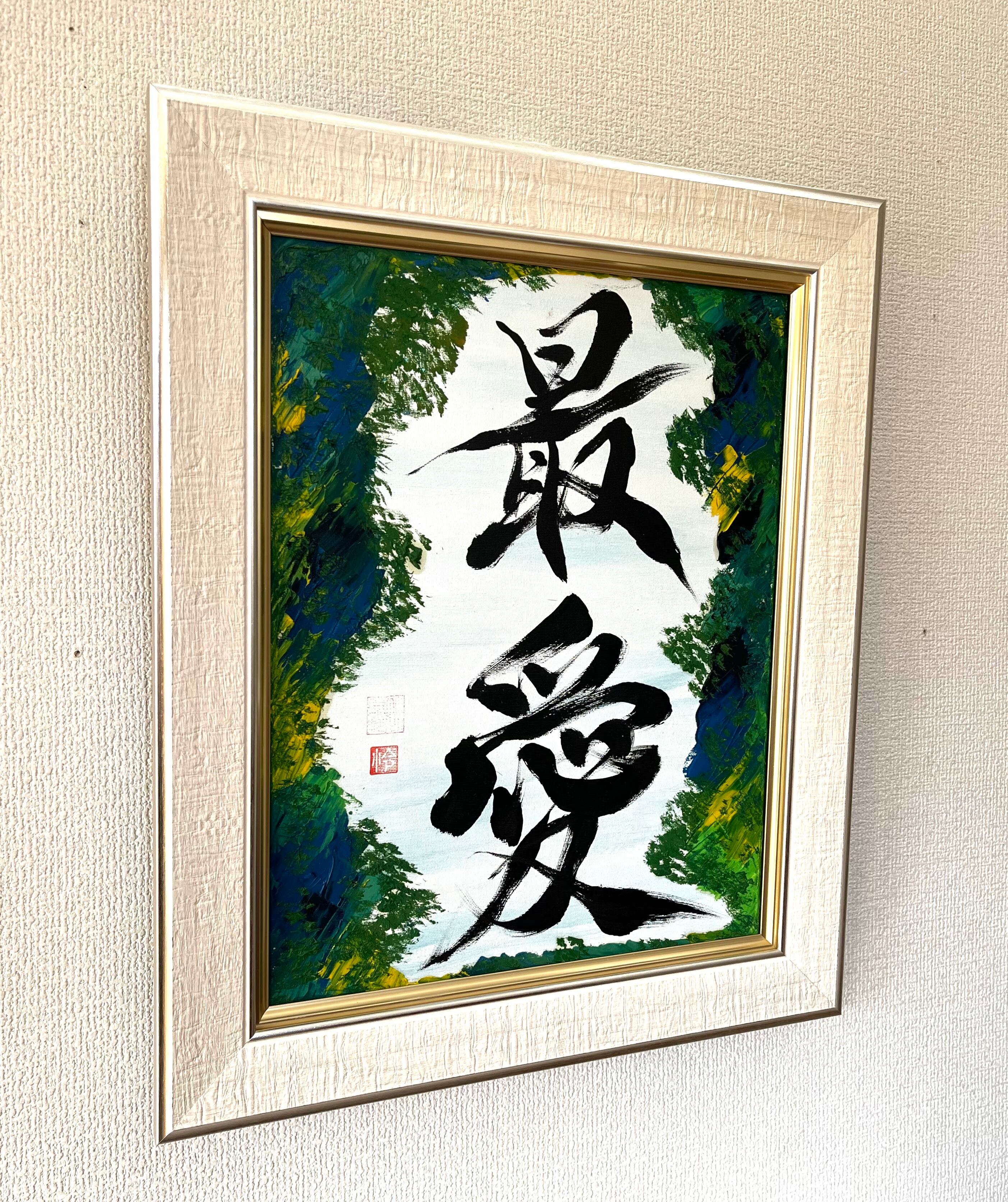 最愛は家族をイメージして書いたもので、当たり前のようにある自然のような存在という事で、背景を緑色で表した作品です。