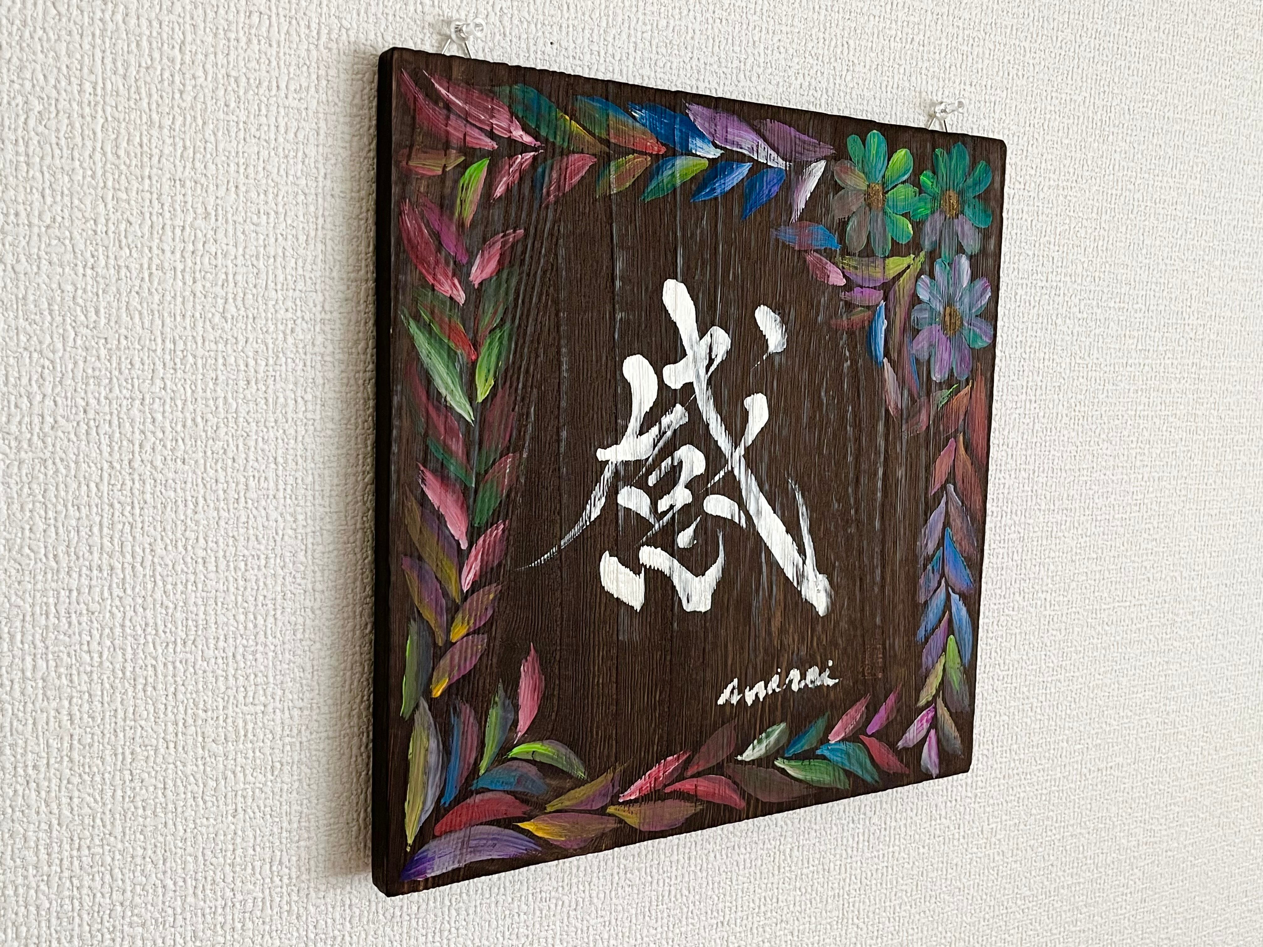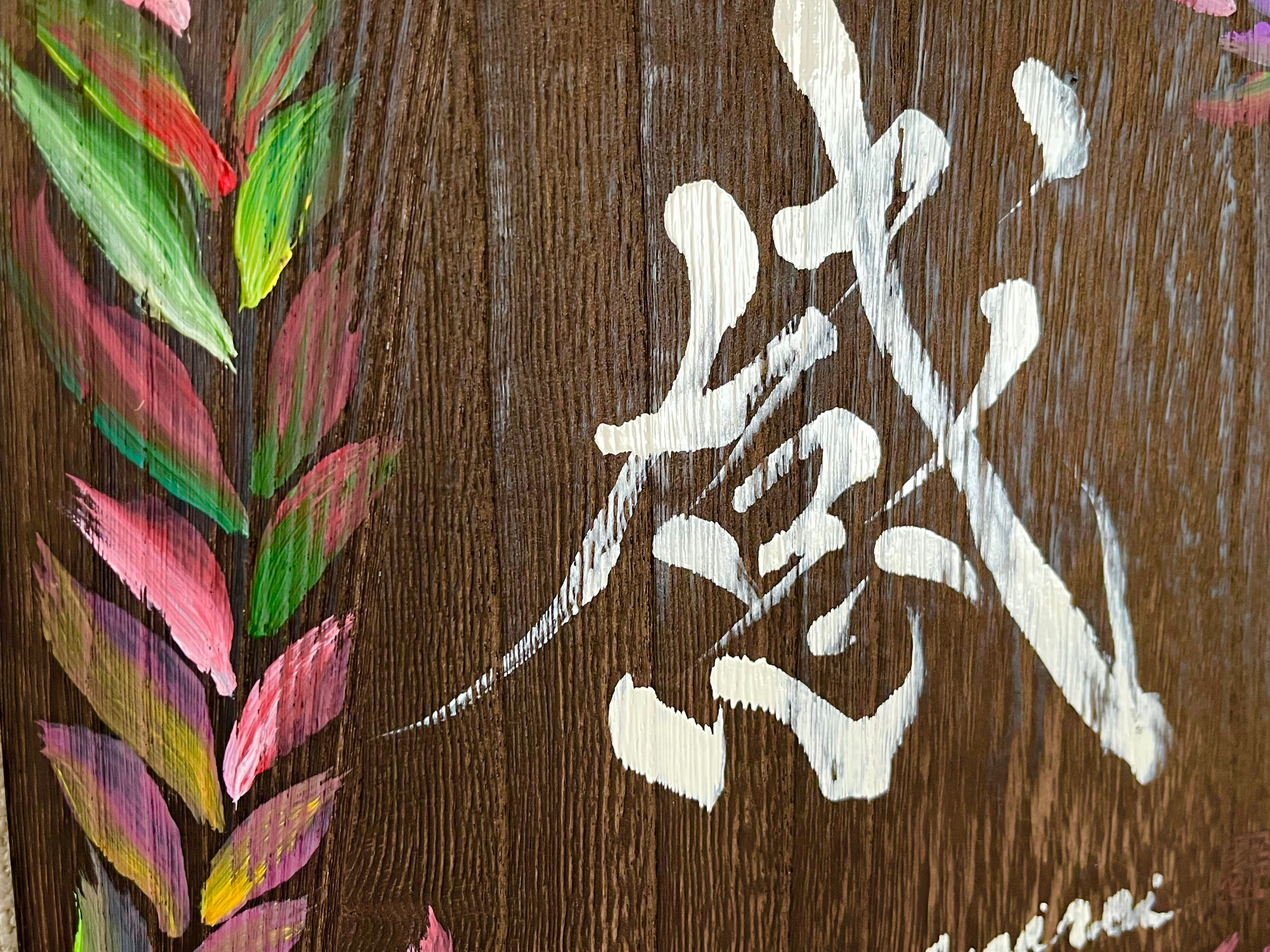 好きな漢字なので、度々書かせて頂いていますが、この作品は華やかな葉っぱとの組み合わせが良くて、個人的に大好きな作品です。