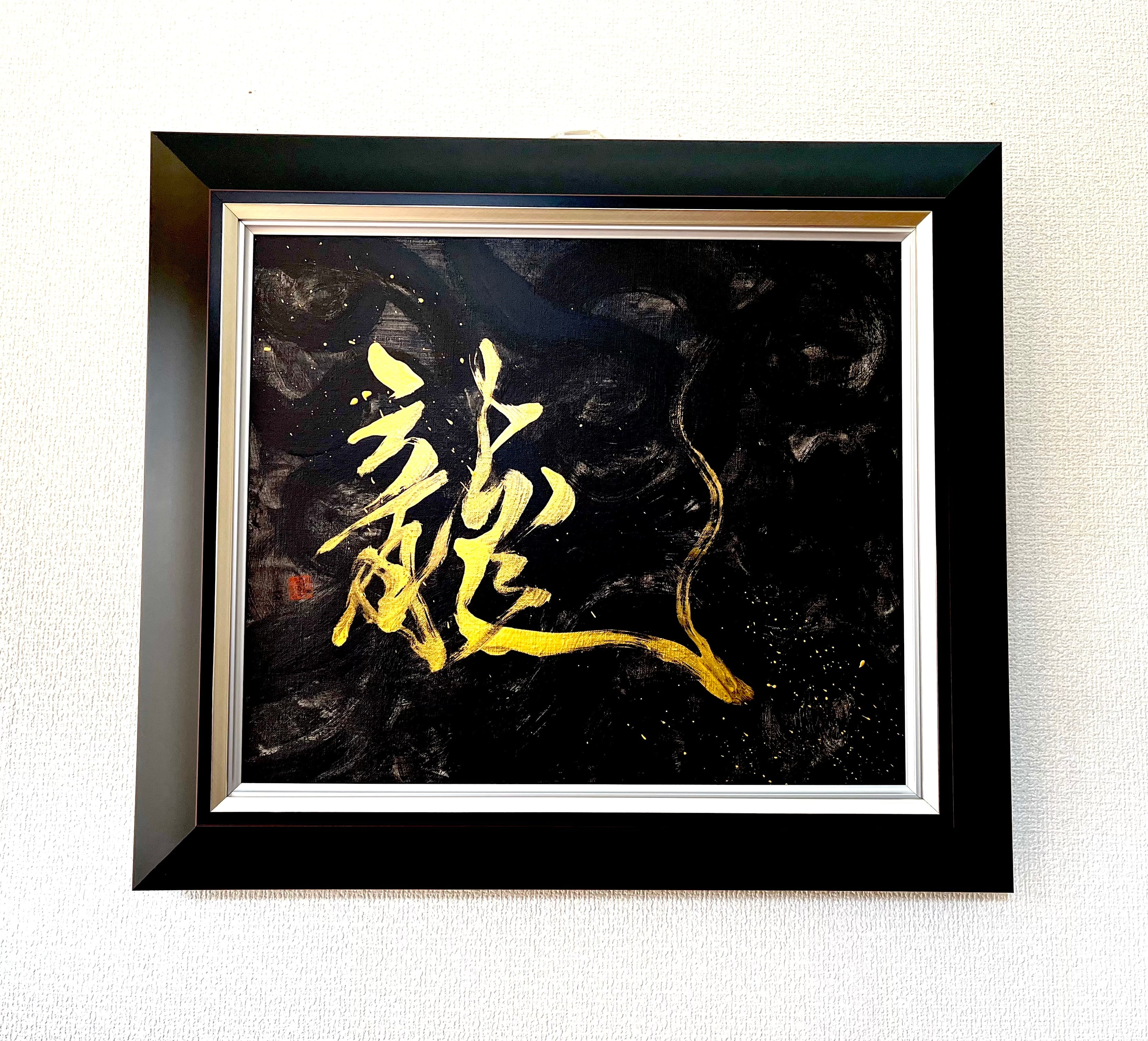 黒の油絵の具で渦を描きながら色付けし、龍のイメージを表しました。